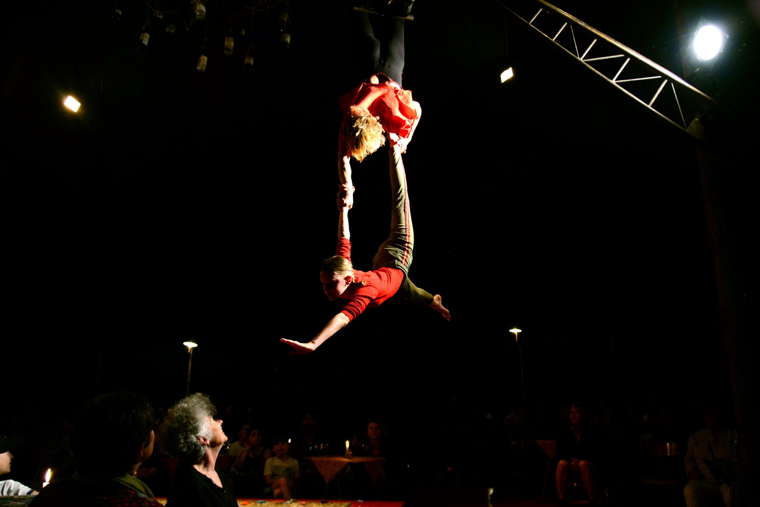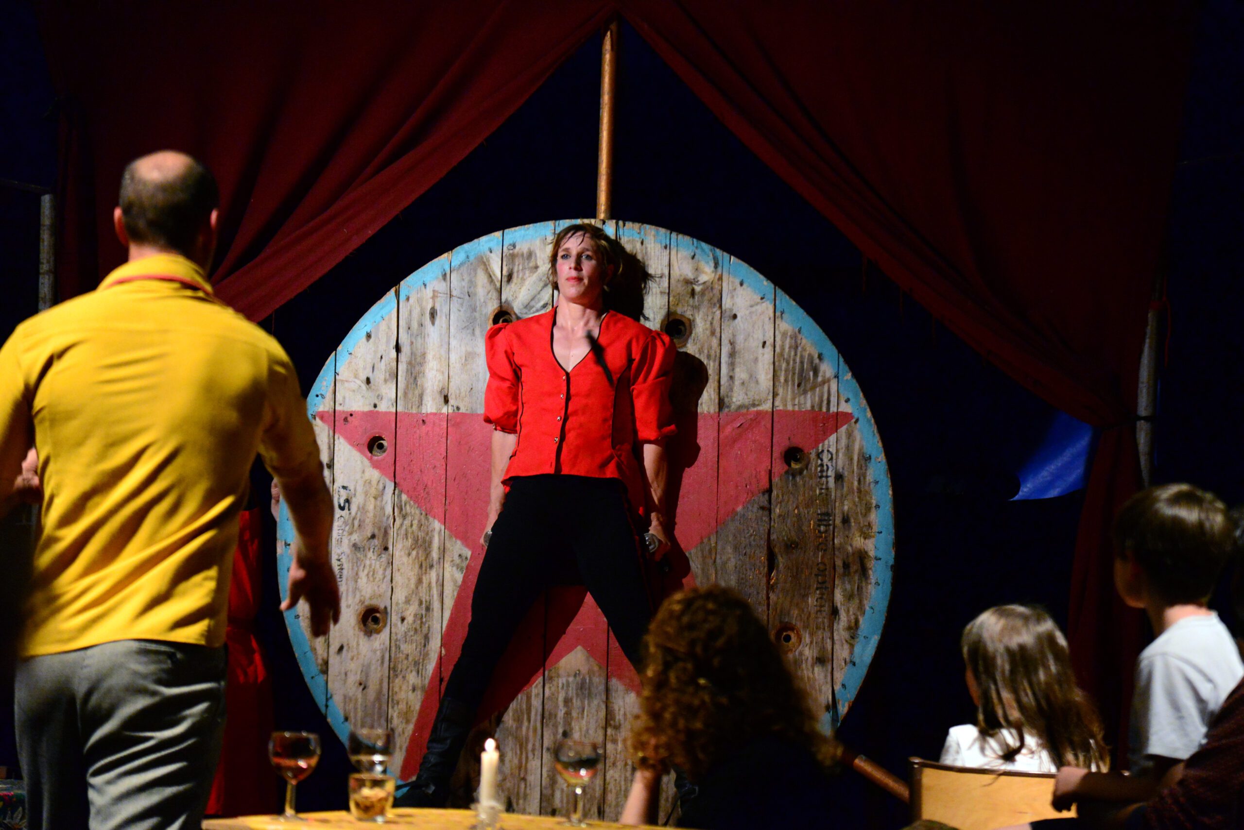 Die Tische sind gedeckt, die Gläser gefüllt. La Faux Populaire lädt im eigenen Circuszelt zum Kabarett. Die Zuschauer:innen nehmen in der Welt von Julien und Juliette an kleinen Tischen rund um die kreisförmige Bühne Platz.