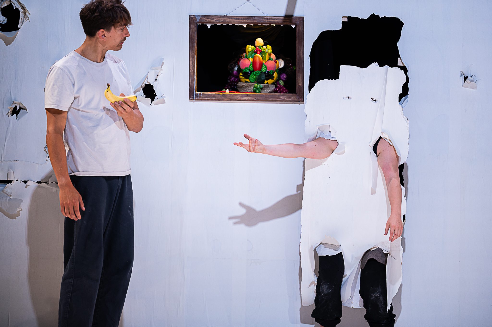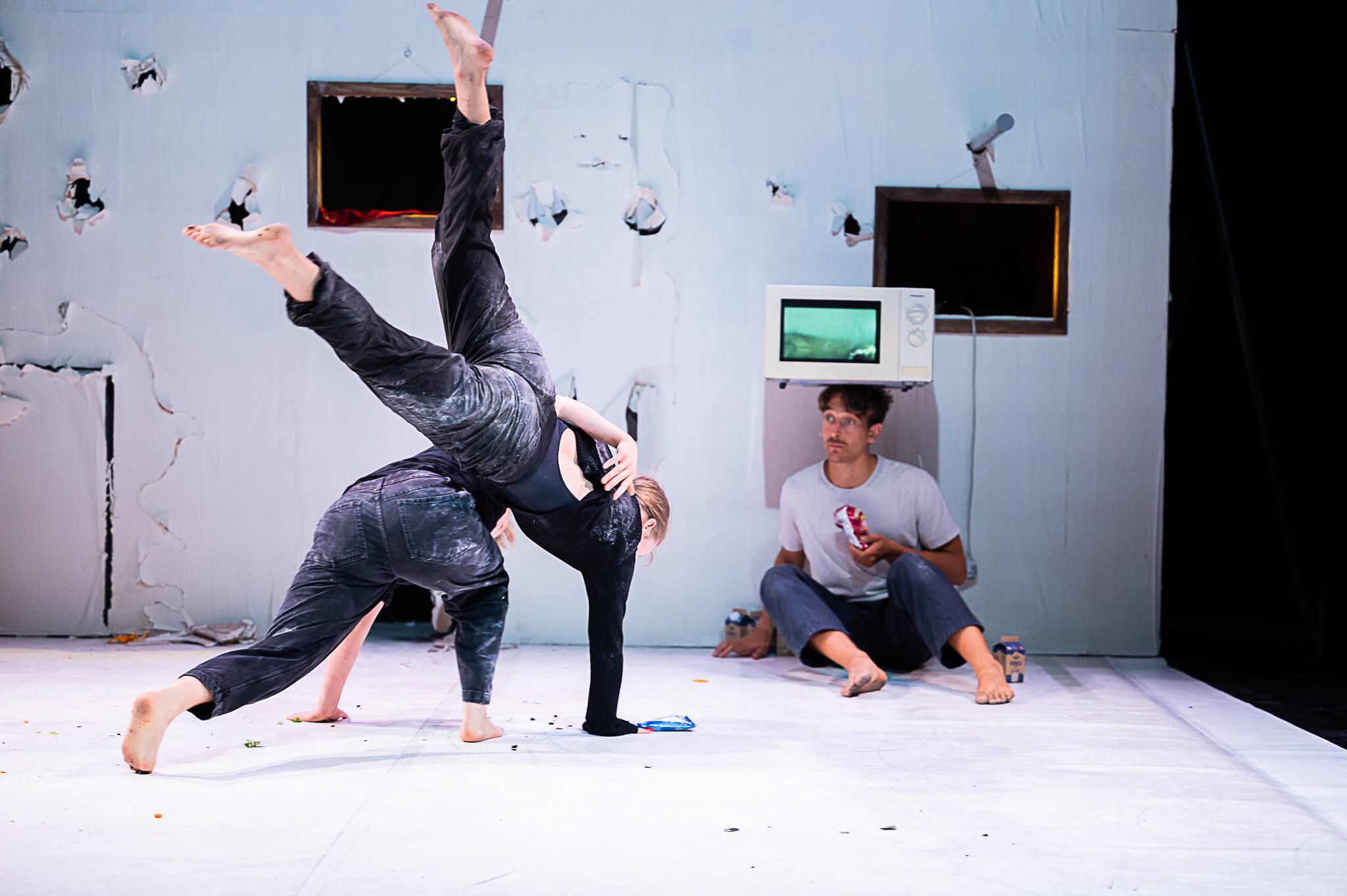 Was als einfacher Akt des Essens beginnt, verwandelt sich allmählich in ein wahnwitziges, fast mechanisches Ritual. Wir beobachten, wie die Grenzen zwischen Wunsch und Notwendigkeit verschwimmen und etwas Groteskes, Über raschendes und verstörend Hypnotisches entsteht. Durch Akrobatik und Objektmanipulation schaffen diese witzigen Circusartisten eine lebendige Körpersprache, die nicht nur ihre eigenen, sondern vielleicht sogar unsere kollektiven Konsumgewohnheiten hinterfragt – Gewohnheiten, die unter dem stillen Druck kommerzieller Überzeugungskraft geformt wurden.